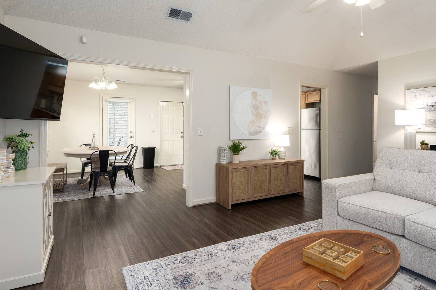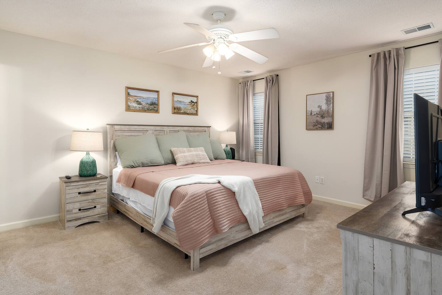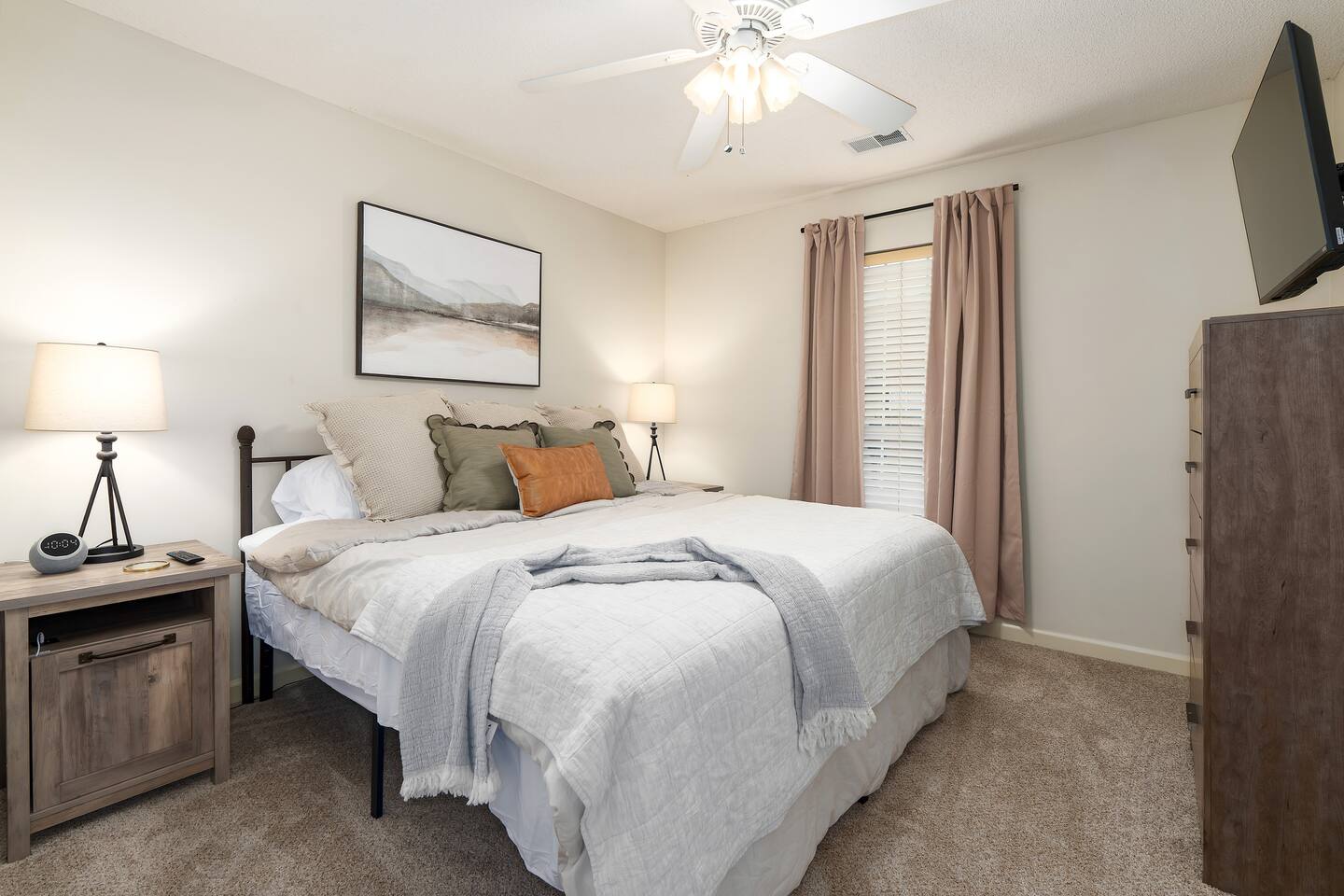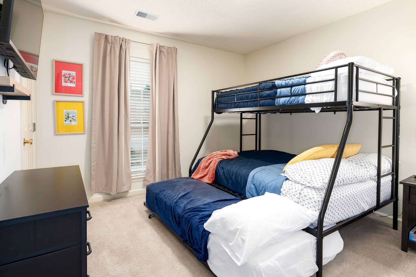 Enjoy plenty of space and comfort in this family-friendly 3-bedroom home! You’ll find two bedrooms each featuring cozy king-size beds, plus a third bedroom with a twin-over-full bunk bed and an additional twin pull-out, perfect for kids or extra guests. The home offers two full bathrooms, including a private ensuite connected to the master bedroom. Relax in the living room with a 55" TV and ample seating for everyone, or gather around the dining table for six to enjoy meals prepared in the fully equipped kitchen—stocked with plenty of appliances, cookware, and utensils for a fantastic home-cooked experience. Take advantage of the 2-car garage, and enjoy strolls on the sidewalk-lined, walker-friendly neighborhood. The property is conveniently located just minutes from downtown Pelham and Alabaster, making it easy to explore local shops, restaurants, and attractions.